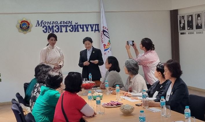 □ 한편, 우리 일행은 10일 오전 몽골한인여성회(회장 : 최병숙) 임원진과 간담회를 통해 주요활동 사항을 공유하고 새롭게 출범할 한통여협 몽골협의회의 활성화를 위해 관심과 협조를 당부했습니다. 또한 몽골여성단체협의회(회장 : 오윤게렐)를 방문해 한통여협을 알리고 한·몽 여성의 지위향상과 권익증진을 위한 정책·의견을 교환하는 등 유익한 일정을 보냈습니다.