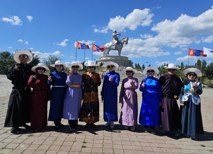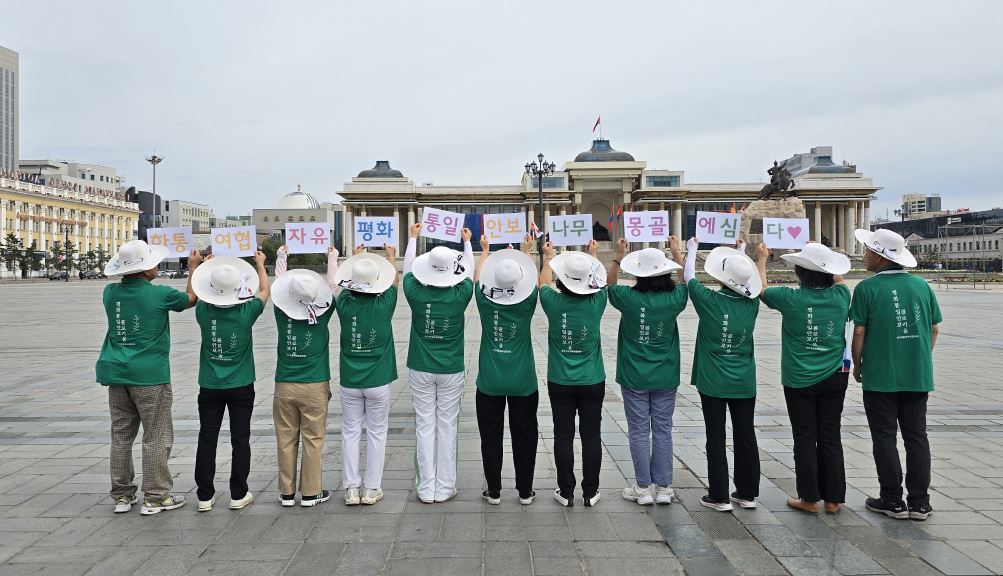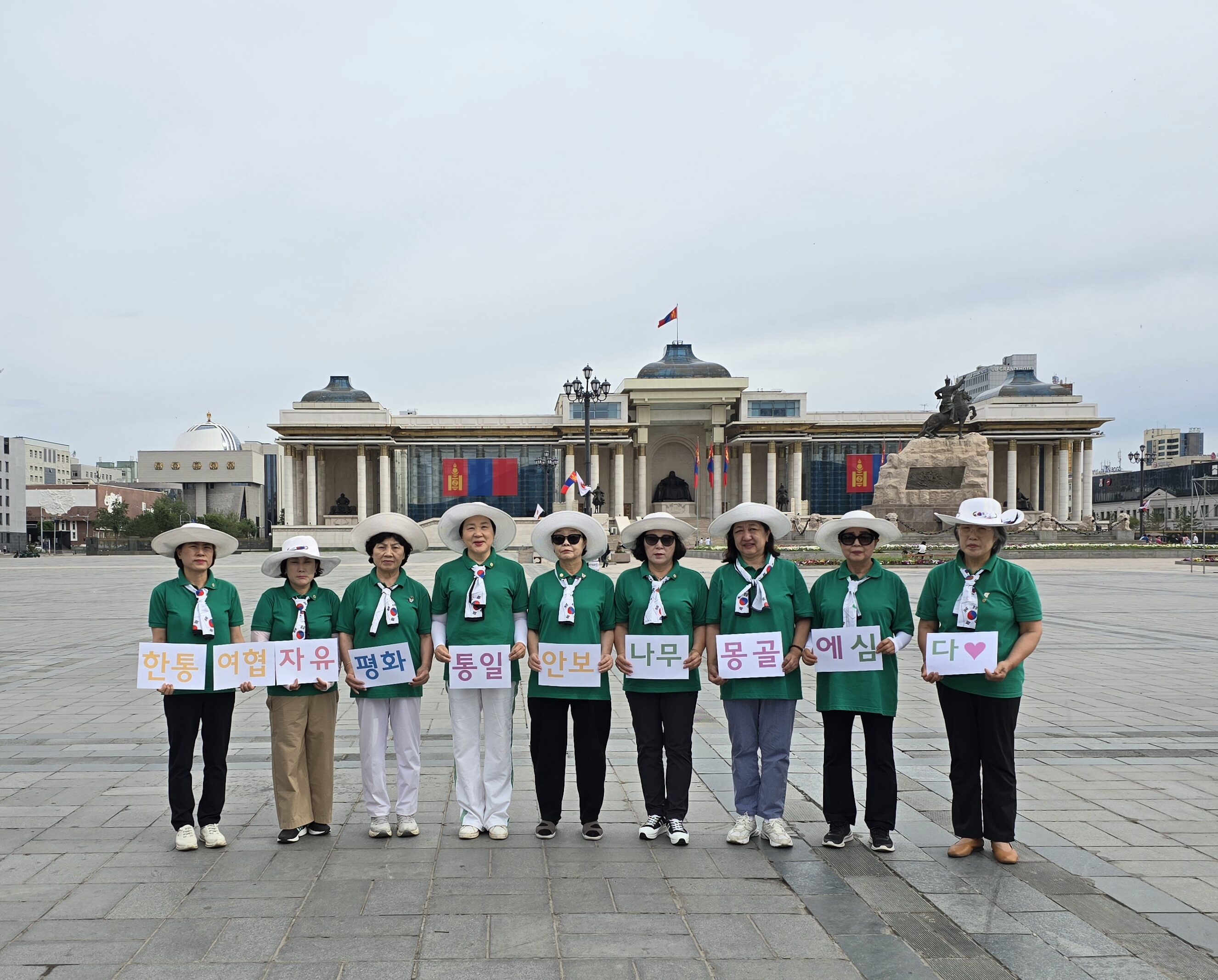 □ 이밖에 안준희 총재를 비롯한 박애경 수석부총재, 마순희·이재수 부총재, 류지숙 사무총장, 조도영 행정실장, 박순금·김복현 정책연구위원, 조윤제·임수명 자문위원 등 우리 일행은 몽골한인회, 몽골한국대시관 방문에 이어 몽골협의회 임원들과 천진불덕, 간단사원 등의 명소를 관광하고, 나담축제현장과 게르에서 몽골문화도 체험했습니다. 칭기즈칸 광장에서는 ‘한통여협 자유, 평화, 통일, 나무, 몽골에 심다’란 글씨가 적힌 종이피켓 퍼포먼스를 통하여 평화통일의 메시지를 알렸습니다.